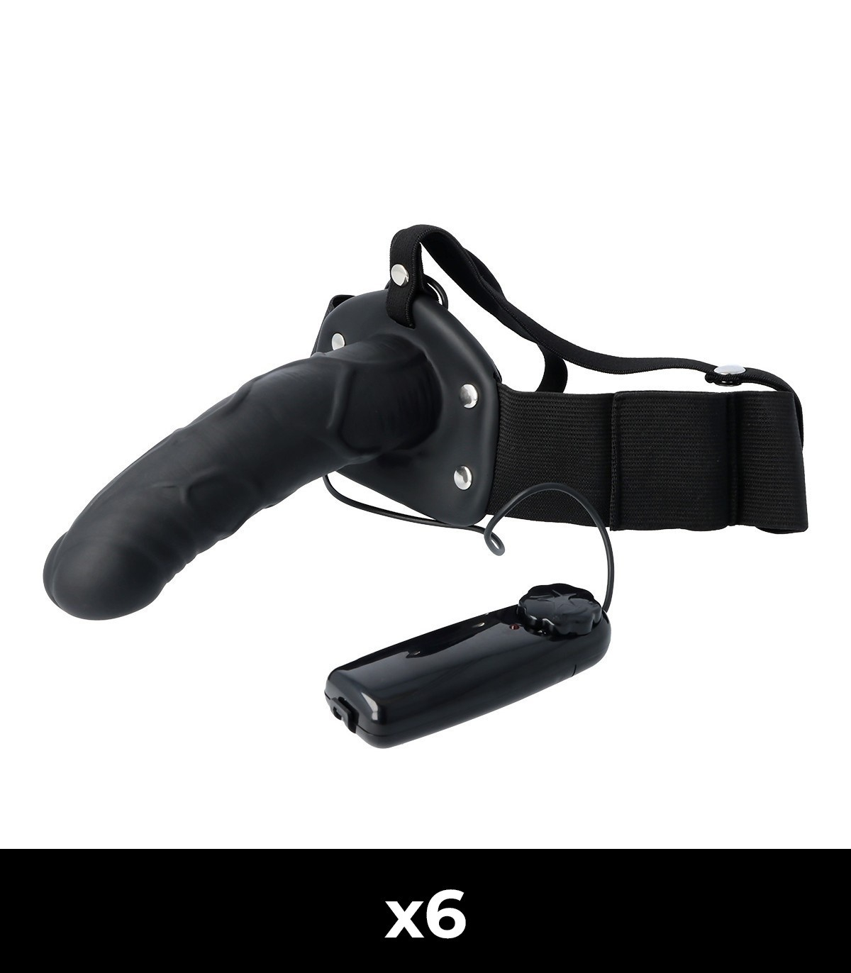 Hollow penis harness made of PVC+ABS with elastic strap for a snug fit. It features a vibrating vibrator for ultimate pleasure.