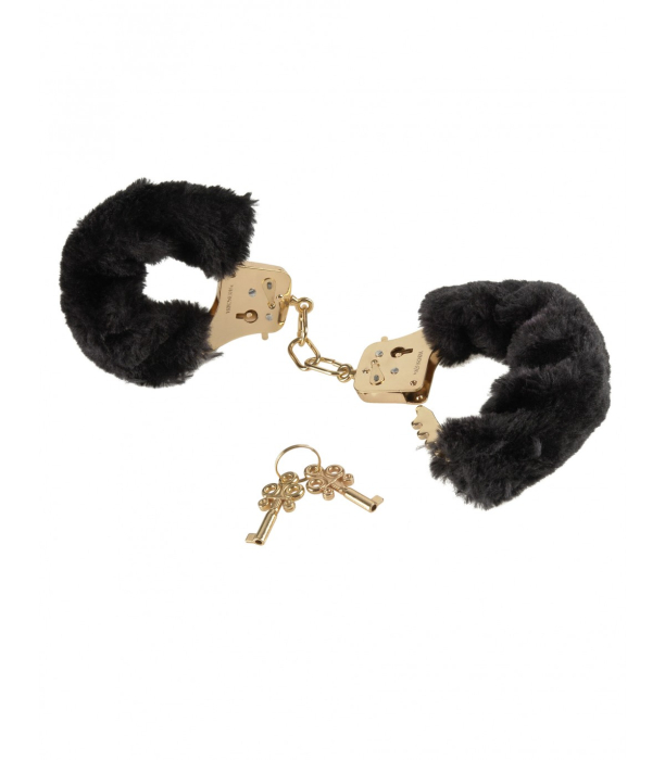 The gold metal handcuffs are lined with velvety soft faux leather to keep your lover comfortably restrained. Designed for rough play, the handcuffs connect with heavy duty hardware to ensure your lover doesn't escape for a long time.
