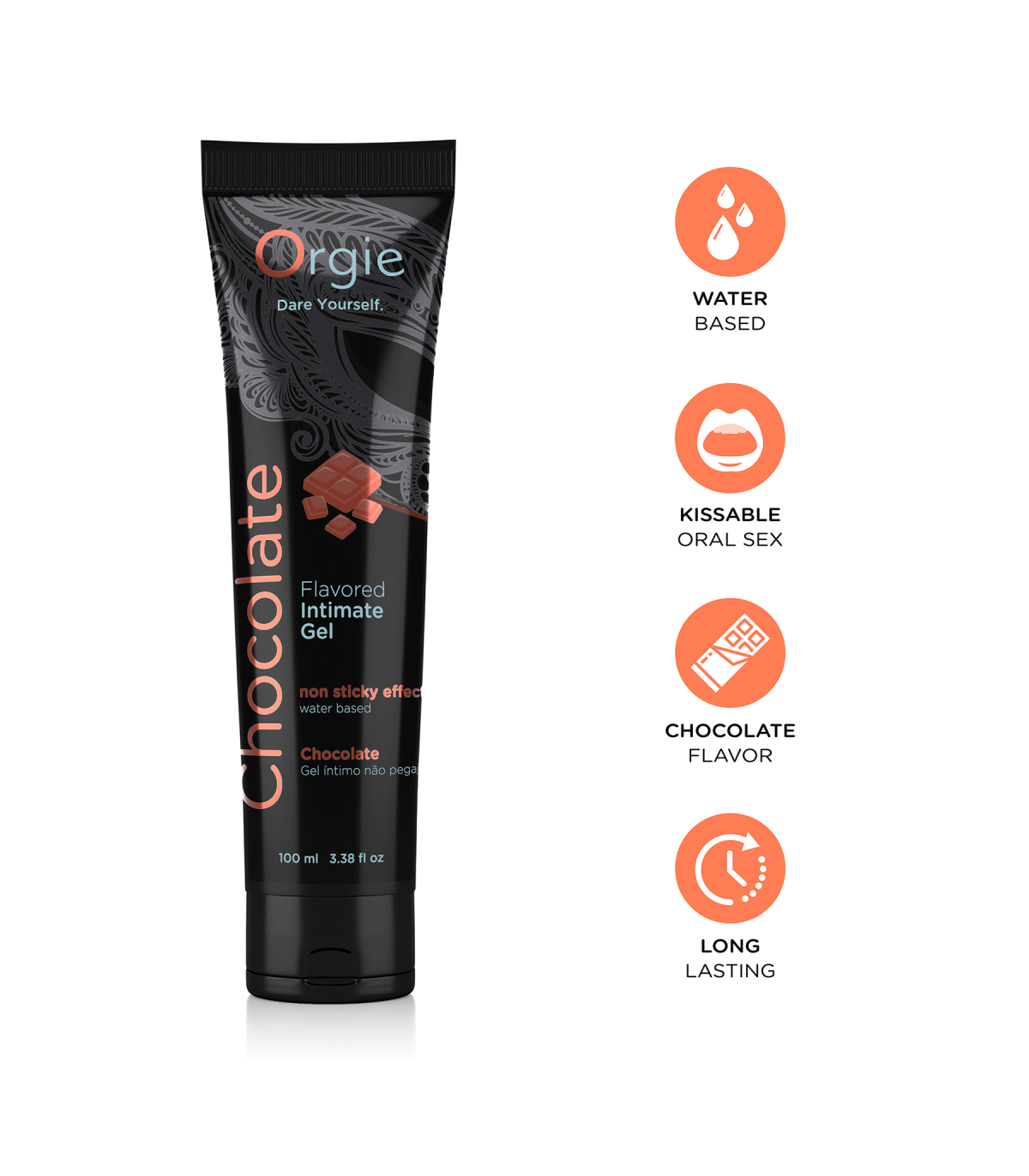 Lube Tube Chocolate is a water-based kissable intimate gel with a delicious chocolate flavor and smell, making this product perfect for oral sex as well. Long lasting lubrication, non-sticky, easy to clean and wash.