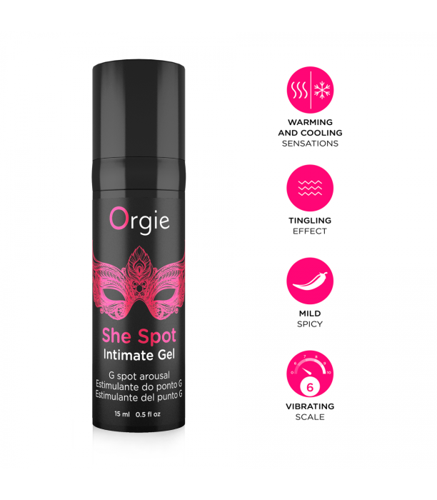 She Spot contains active ingredients in its formula that stimulate the G-spot area, making it even more sensitive. It is an intimate arousal gel for her that can be shared by couples due to its characteristics. Instant intense vibration and tingling effect with warm, refreshing and sweet spice sensations that evolve during its action time. Product subjected to dermatological, gynecological and efficacy studies. Tested and approved.