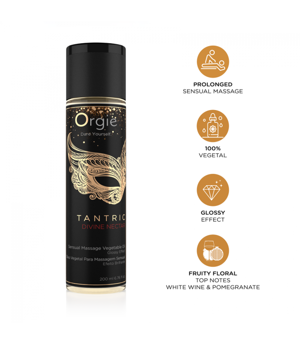 Tantric Sensual Massage Oil is formulated with Sweet Almond Oil, Grape Seed Oil, Sunflower Oil and Argan Oil. Glossy effect.